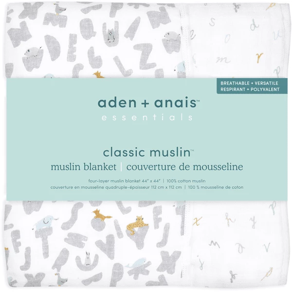 aden + anais™ essential s katoenen mousseline deken alpha bet animals