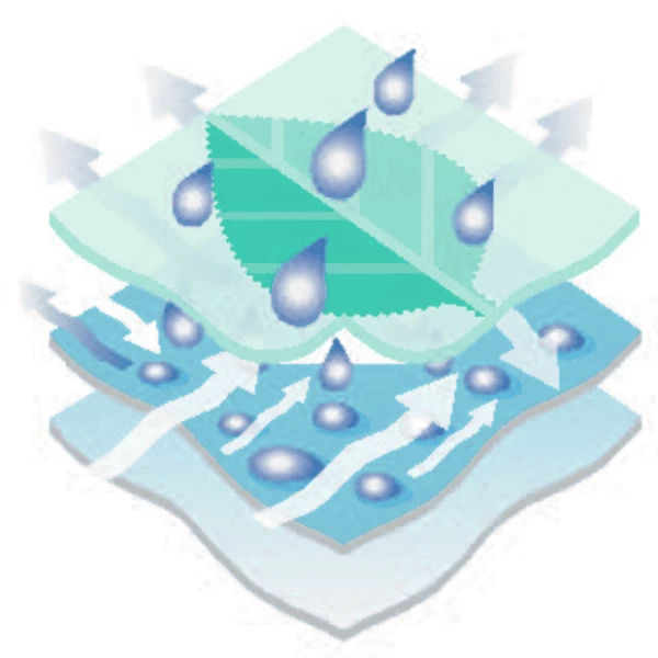 Met “droog effect”: waterafstotend en vochtregulerend doek