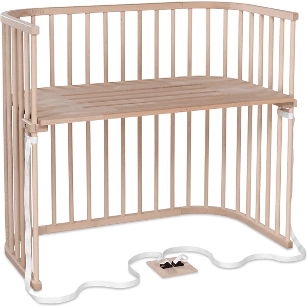 babybay® Boxspring XXL, de oplossing voor alle hoge bedden. Door de hoge constructie en de gepatenteerde, traploze hoogteverstelling kan het ligvlak exact worden aangepast aan hoge en kaderloze boxspringbedden – zonder opstap, zonder spleet. Altijd gelijk op één niveau met het bed van mama. Vooral in de eerste maanden is nauw contact tussen jou en je baby erg belangrijk, met het extra grote XXL ligvlak kun je nog langer genieten van de nabijheid van je kleine lieveling. babybay® Boxspring XXL is daarom ook ideaal voor een tweeling. Met de speciale riembevestiging kan hij eenvoudig, veilig en zonder gereedschap worden bevestigd en losgemaakt van elk boxspringbed. Je kunt kiezen tussen verschillende accessoires en je eigen individuele droombed samenstellen. De babybay® Boxspring XXL is verkrijgbaar in verschillende lakvarianten. De lakken zijn vrij van schadelijke stoffen en voldoen aan de EN71.3 normen, het beukenhout is afkomstig uit duurzaam beheerde bossen. Het is volledig gemaakt van natuurlijk, antibacterieel en antistatisch massief beukenhout – zonder compromissen, zonder houtvervangers. Als je baby uit het bedje is gegroeid, kun je babybay® gemakkelijk uitklappen en gebruiken als box, bank of tafel.