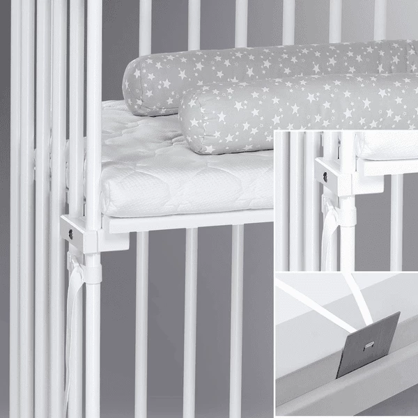 babybay® Boxspring, de oplossing voor alle hoge bedden. Door de hoge constructie en de gepatenteerde, traploze hoogteverstelling kan het ligvlak exact worden aangepast aan hoge en kaderloze boxspringbedden – zonder opstap, zonder spleet. Altijd gelijk op één niveau met het bed van mama. Vooral in de eerste maanden is nauw contact tussen jou en je baby erg belangrijk, met het extra grote XXL ligvlak kun je nog langer genieten van de nabijheid van je kleine lieveling. babybay® Boxspring XXL is daarom ook ideaal voor een tweeling. Met de speciale riembevestiging kan hij eenvoudig, veilig en zonder gereedschap worden bevestigd en losgemaakt van elk boxspringbed. Je kunt kiezen tussen verschillende accessoires en je eigen individuele droombed samenstellen. De babybay® Boxspring XXL is verkrijgbaar in verschillende lakvarianten. De lakken zijn vrij van schadelijke stoffen en voldoen aan de EN71.3 normen, het beukenhout is afkomstig uit duurzaam beheerde bossen. Het is volledig gemaakt van natuurlijk, antibacterieel en antistatisch massief beukenhout – zonder compromissen, zonder houtvervangers. Als je baby uit het bedje is gegroeid, kun je babybay® gemakkelijk uitklappen en gebruiken als box, bank of tafel.