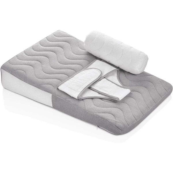 Overigens: Om te voorkomen dat het babyJem Refluxkussen wegglijdt, heeft de ademende, wasbare hoes aan de onderkant een andere structuur dan de gevoerde bovenkant.