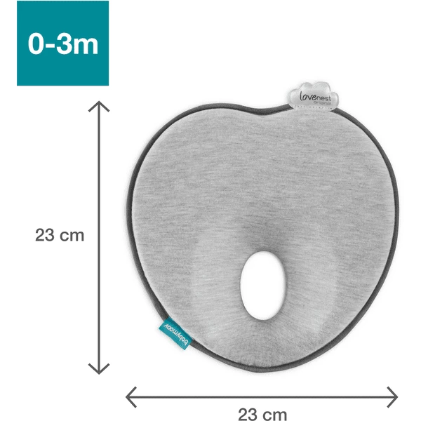 Het gepatenteerde Lovenest-babykussen voorkomt de vervorming van het achterhoofd van het kind door de rugligging. De specifieke helling en de speciale vorm beschermen de vorm van de schedel van de baby, die veel langer is dan die van een volwassene, en zorgen voor een gelijkmatige verdeling van de druk op de schedel van de baby.