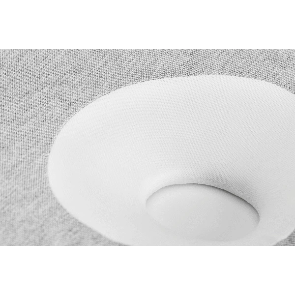 - De neigingshoek en het gat in het midden zorgt voor een gelijkmatige verdeling van de druk op de schedel van het kindje.