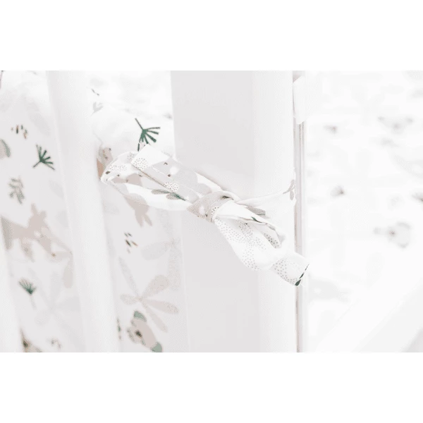 - Het nest kan eenvoudig met linten aan de ledikantrails worden bevestigd