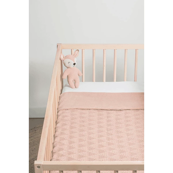 Sleep tight, don’t let the bed bugs bite! Laat jouw kleintje heerlijk wegdromen onder deze gebreide deken. De deken heeft een mooie structuur die op golfjes lijkt