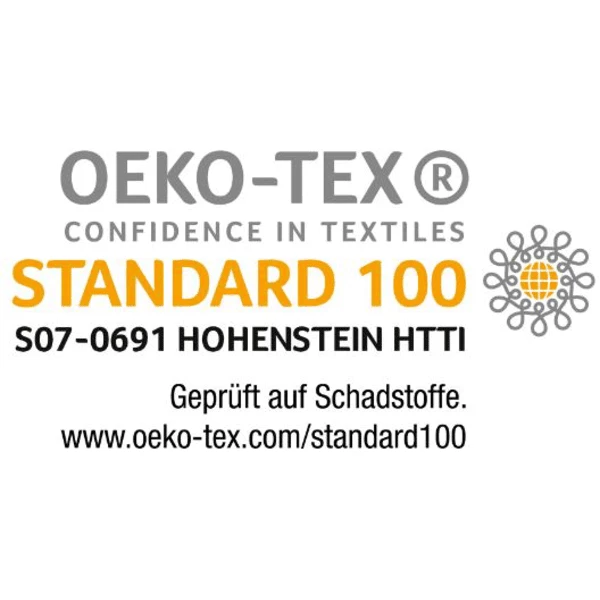 - Getest op schadelijke stoffen volgens STANDAARD 100 door OEKO-TEX® (testnr. S07-0691 HOHENSTEIN HTTI)