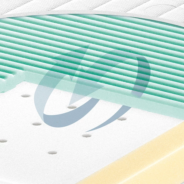 - 3-voudige ventilatie: merkschuim met golfsnede op het oppervlak en de verticale en horizontale ventilatiekanalen zorgen voor een perfect slaapklimaat
