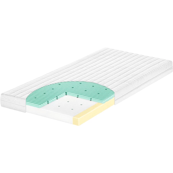 Hoogwaardige grondstoffen en een hoge puntelasticiteit maken koudschuim tot een eersteklas materiaal voor matrassen. Koudschuim heeft open poriën en is daardoor luchtdoorlaatbaarder, d.w.z. luchtiger en lichter dan andere schuimsoorten. Bovendien wordt het gekenmerkt door een hoge veerkracht, duurzaamheid en lange levensduur. Koudschuim is milieuvriendelijk en bijzonder geschikt voor mensen met een allergie. - Functionele hoes Baby Fresh & Dry