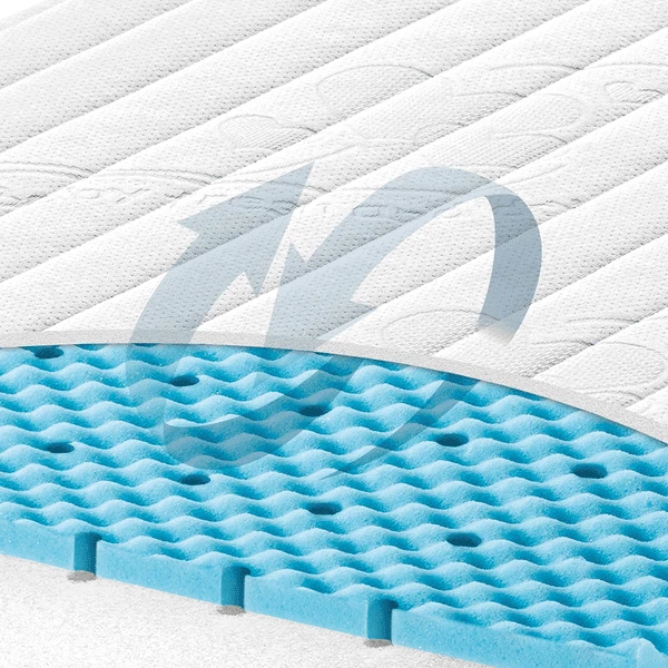 - Het koudschuim met open poriën met noppenprofiel op het oppervlak en de verticale ventilatiekanalen zorgen voor een perfect slaapklimaat.