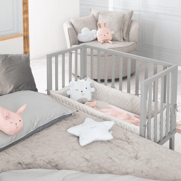 Het opklapbed is gemakkelijk in elkaar te zetten (ca. 15 minuten) en kan gemakkelijk en veilig aan het bed van de ouders worden bevestigd met behulp van de meegeleverde riemen. Met een hoogteverstelling van 42,5 cm tot elke bedhoogte, ook boxspringbedden, kan het wiegje optimaal aan de hoogte van het oudermatras worden aangepast zonder weg te glijden. Het 2in1 extra bed is geschikt vanaf de geboorte en groeit met het kind mee tot een kinderbankje voor oudere kinderen.