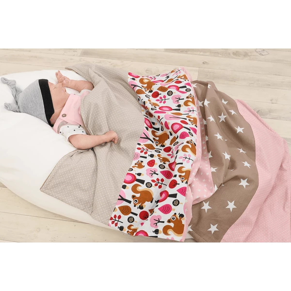 De fraai vormgegeven deken heeft een afmeting van 70 x 100 cm en is een handig en decoratief accessoire voor vele situaties. Gebruik de mooie patchwork deken als een kinderwagendeken op koele dagen of gewoon als een knuffeldeken. De deken in prachtige kleuren heeft een warme fleece aan de binnenkant. Gemakkelijk op te vouwen, het is de perfecte reisgenoot om je baby te beschermen bij koudere temperaturen in het voorjaar, de zomer en de herfst.